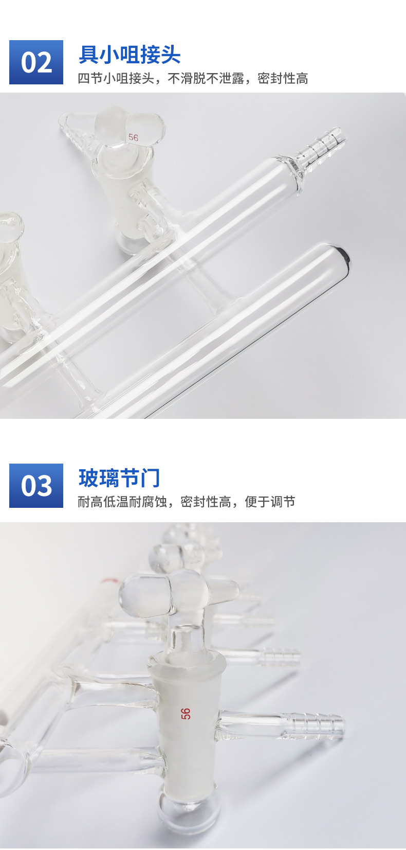 天津诚盛双排管真空气体分配器空心节门塞化学实验室仪器玻璃耗材 3节门 300mm