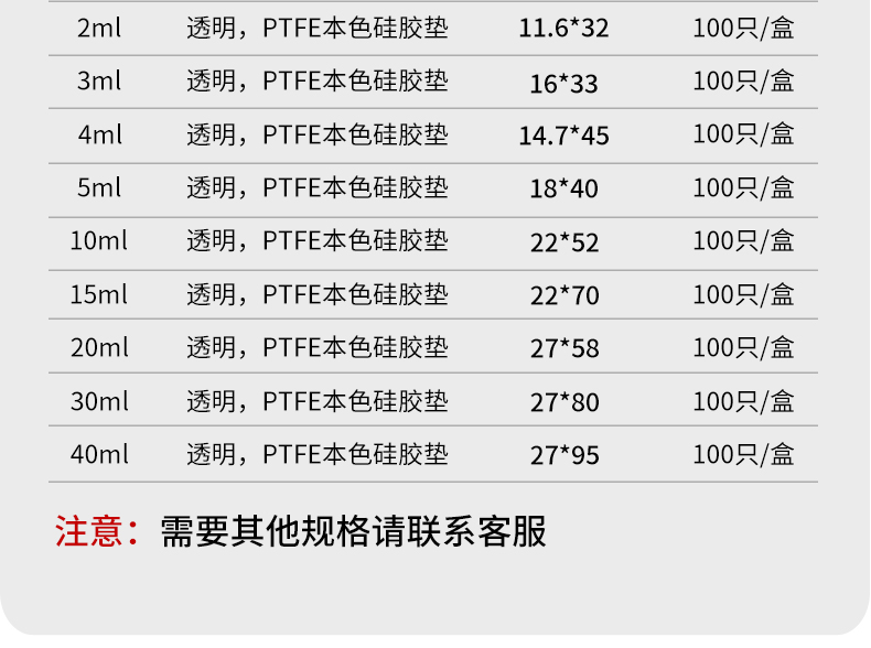 40ml透明 PTFE本色硅胶垫 100只/盒