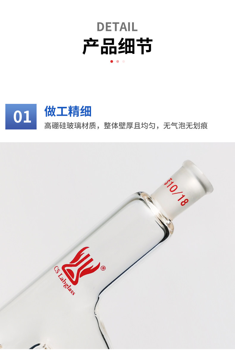 天津诚盛带刺蒸馏头标准磨口化工化学实验室玻璃仪器耗材高硼硅 上磨口10/18 下磨口24/40