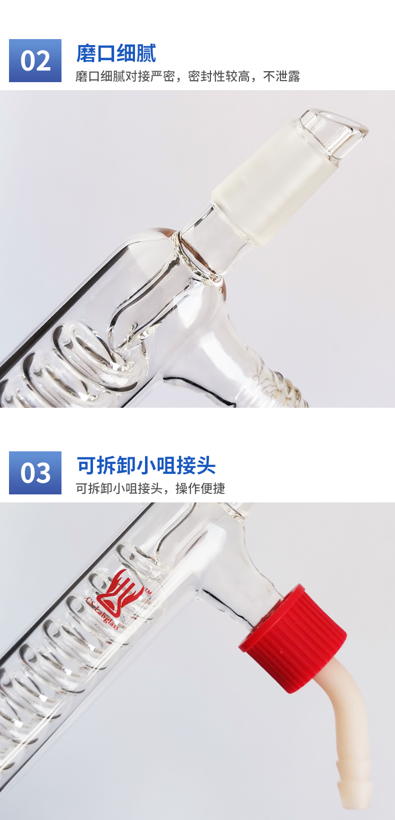 天津诚盛格式蛇型冷凝管高硼硅玻璃化学实验室教学玻璃仪器 19/22长度200mm