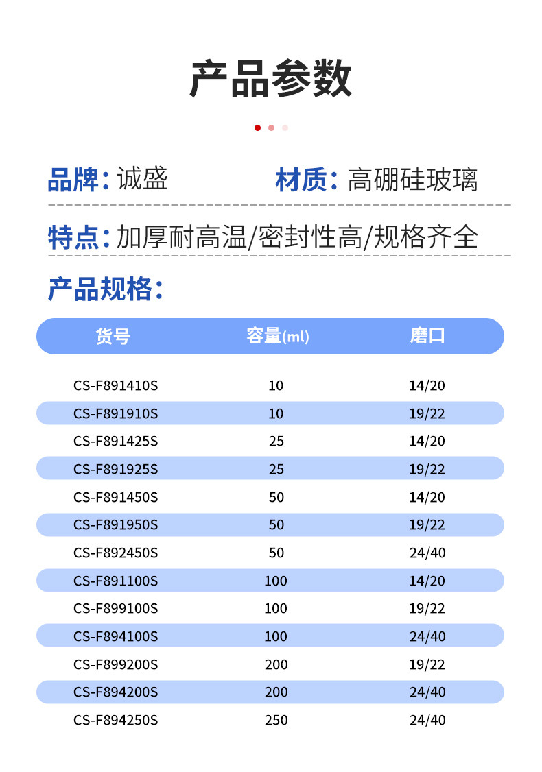 天津诚盛反应管25/50/100ml四氟节门化学实验室玻璃仪器史莱克管 14/20 容量:10ml
