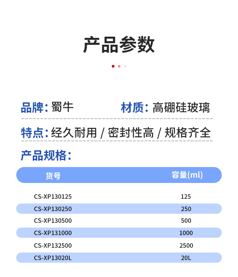 蜀牛抽滤瓶具小咀125/250/500/1000ml化学实验室玻璃仪器抽滤装置 20L